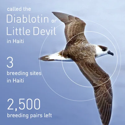 Considered extinct for decades until the species was re-discovered in the remote highlands of Haiti in the 1960’s, the Diablotin has since teetered on the brink of extinction.